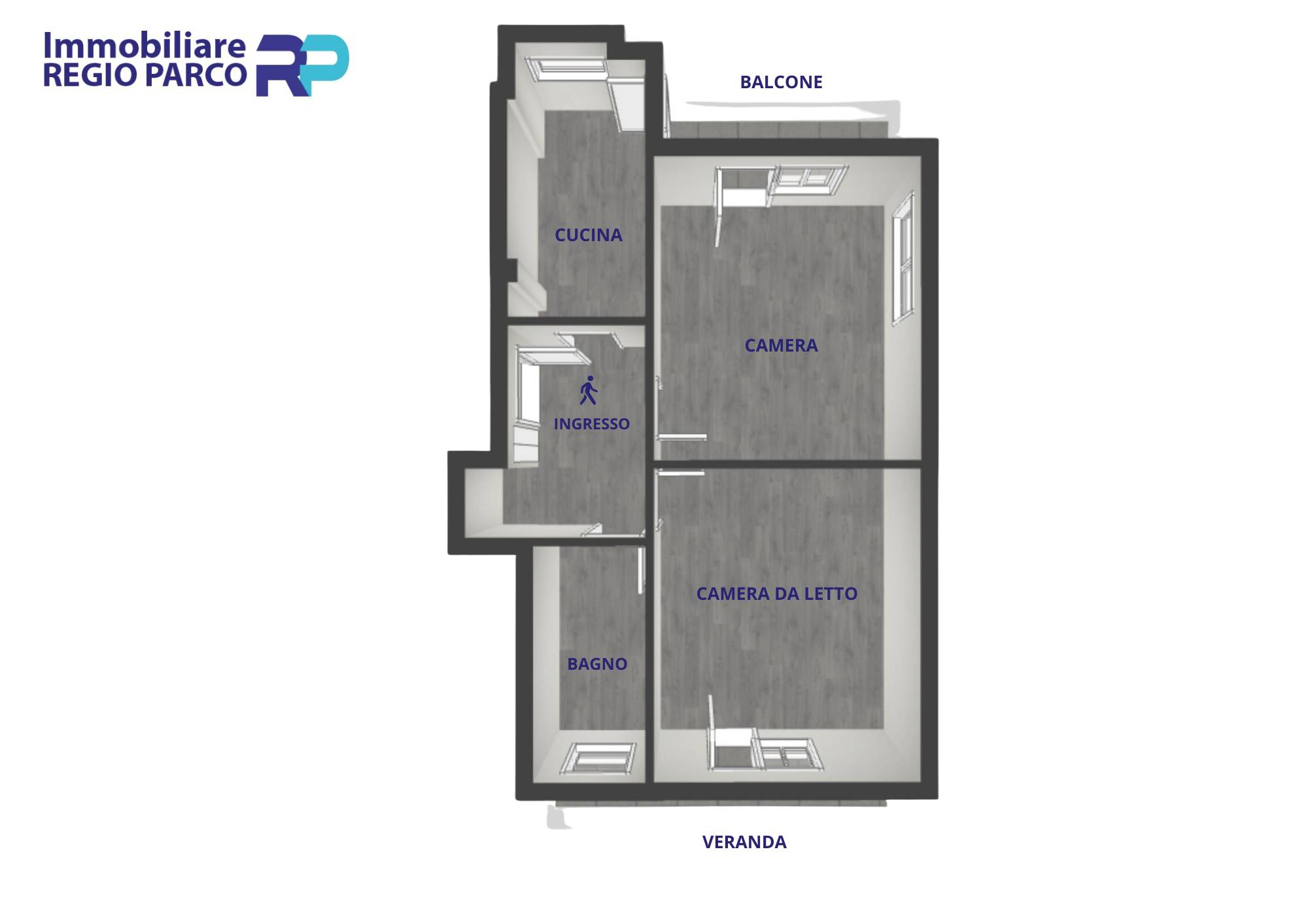 La camera da letto matrimoniale gode di ottima metratura ed è servita da un balcone verandato di dimensioni generose, ideale come zona relax o spazio lavanderia.
